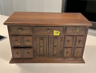 So I gave up on the sewing machine, but I totally scored the killer jewelry box featured above! I have been wanting something to go in my closet to hold the jewelry I never wear because it’s in a box in a bag in my sock drawer. It might look super fab painted in a high-gloss bright blue?